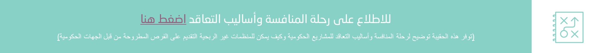 للاطلاع على أبرز الإرشادات التي يمكن اتباعها لإسناد الخدمات والدخول للمنافسات الحكومية من خلال الاطلاع على الدليل الإرشادي اضغط هنا